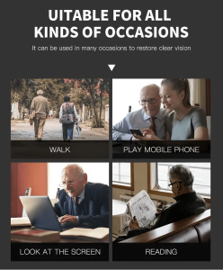 - Suitable for all occasions:For those with presbyopia, this is a well-designed and practical aid that can be used indoors or outdoors in any weather conditions. It is especially ideal for sports, reading books and newspapers, watching TV, playing games, traveling, attending meetings, and fishing!